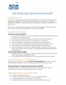 Camp Kirk Events